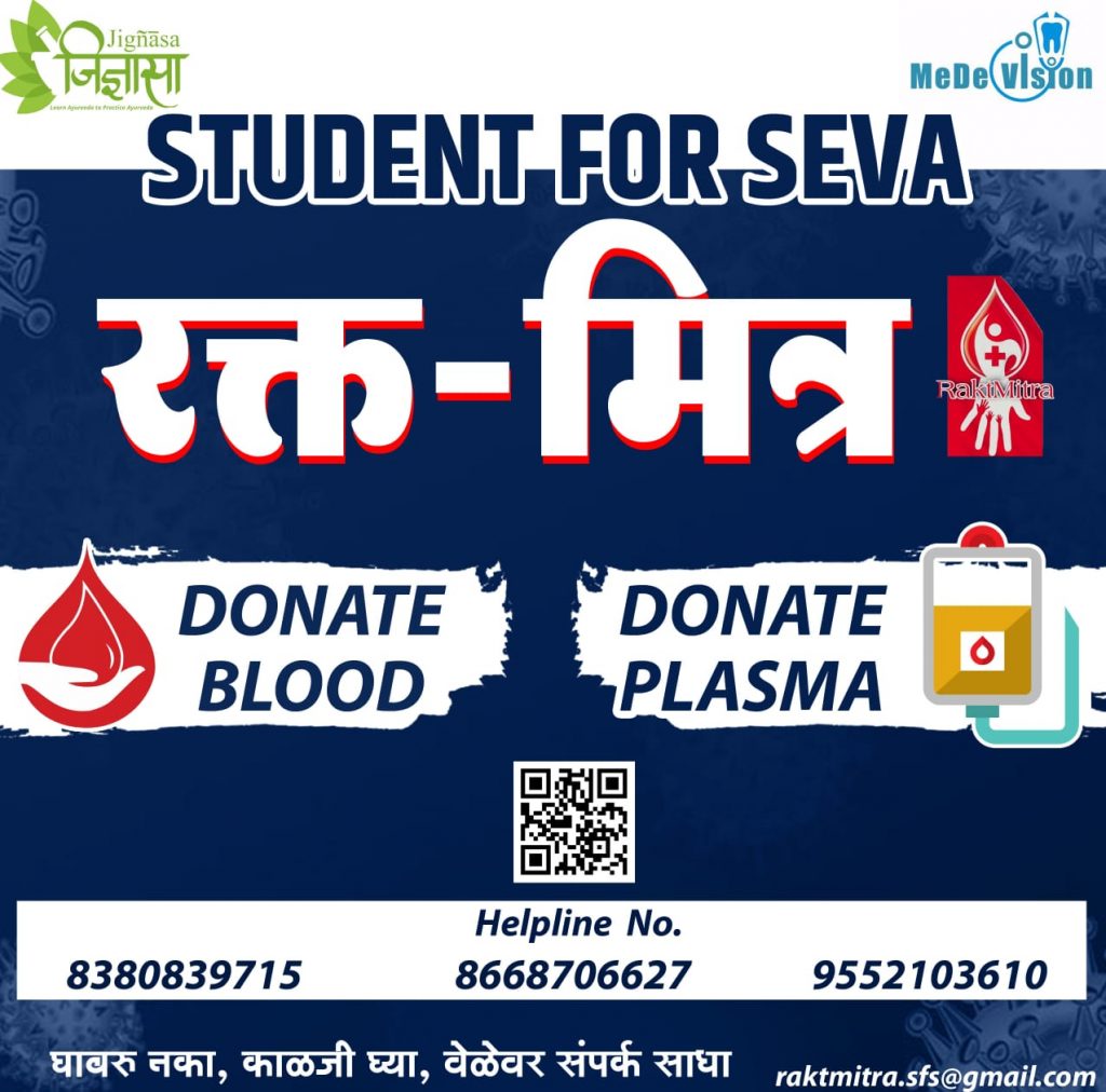 सध्या महाराष्ट्रात कोरोनाची परिस्थिती अत्यंत गंभीर होत चालली आहे.रक्ताचा आणि प्लाज्मा चा तुटवडा मोठ्या प्रमाणात जाणवत आहे आणि लसीकरणा नंतर पुढे काही दिवस रक्तदान हे करता येत नाही. त्यामुळे अजुन गंभीर परिस्थिती निर्माण होऊ शकते म्हणून एक पाऊल पुढे येऊन रक्तदान करूया. तसेच कोरोनाच्या आजारातून पूर्णपणे बरे झालेल्या लोकांनी प्लाज्मा दान केला पाहिजे व इतरांना यातुन बाहेर येण्यासाठी मदत केली पाहिजे.
