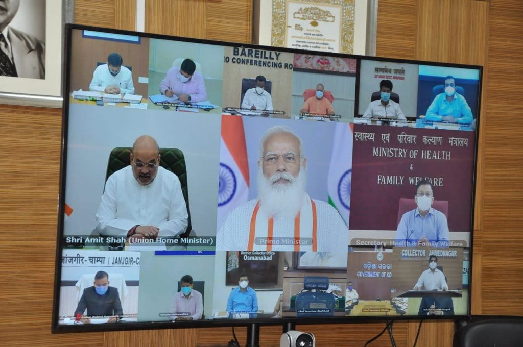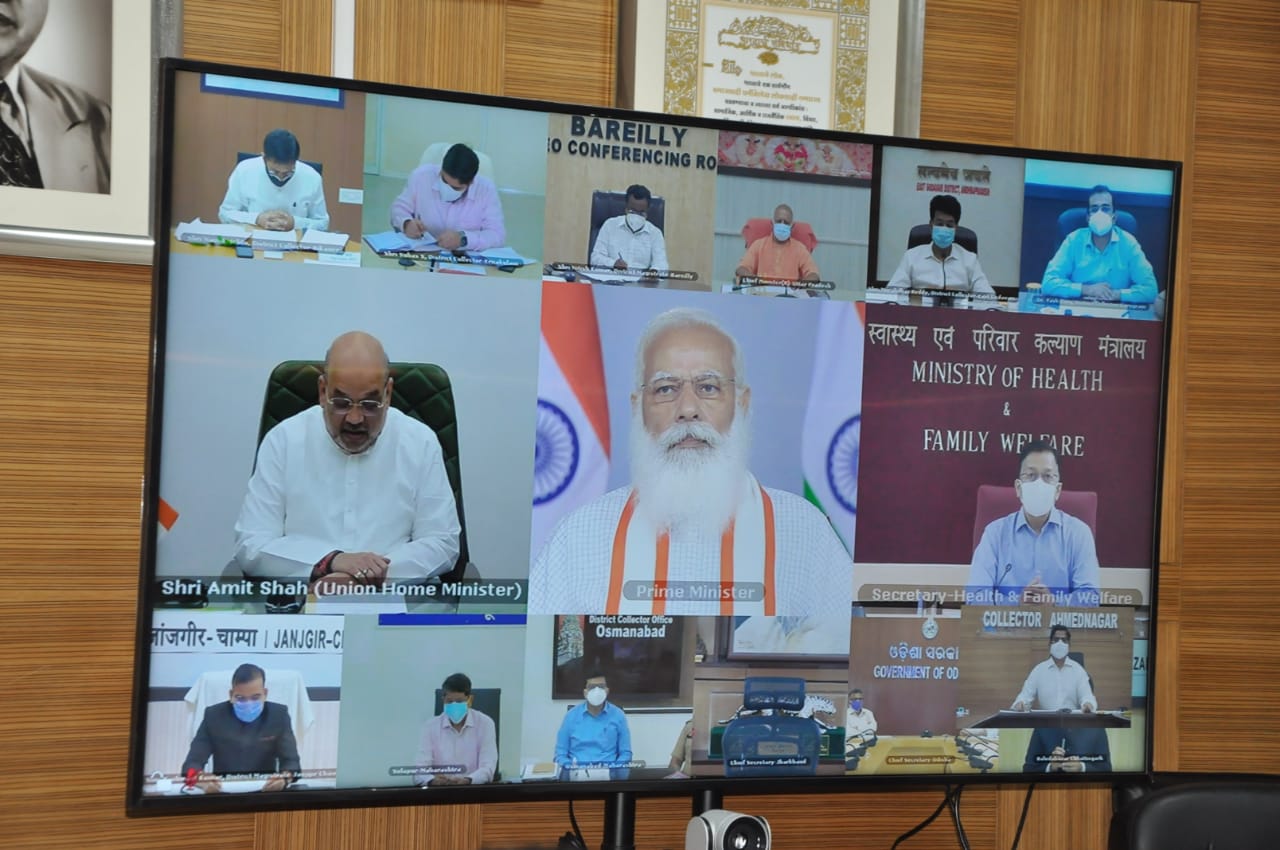 पंतप्रधान श्री. मोदी यांनी कोरोना प्रतिबंधात्मक उपाययोजना आणि त्याची अंमलबजावणी यासंदर्भात जिल्हाधिकारी यांच्याशी थेट संवाद साधला. केंद्रीय गृहमंत्री अमित शहा, केंद्रीय आरोग्य मंत्रालयाचे अधिकारी तसेच मुंबईहून मुख्यमंत्री उद्धव बाळासाहेब ठाकरे, आरोग्य मंत्री राजेश टोपे तसेच वरिष्ठ अधिकारी यावेळी उपस्थित होते. विविध राज्यातील निवडक जिल्ह्याचे जिल्हाधिकारी यावेळी सहभागी झाले होते. यावेळी जिल्हा मुख्यालयातून जिल्हाधिकारी डॉ. भोसले यांच्यासह जिल्हा पोलीस अधीक्षक मनोज पाटील. जिल्हा परिषदेचे मुख्य कार्यकारी अधिकारी राजेंद्र क्षीरसागर, महानगरपालिका आयुक्त शंकर गोरे, निवासी उपजिल्हाधिकारी संदीप निचित, जिल्हा शल्य चिकित्सक डॉ. सुनील पोखरणा, जिल्हा आरोग्य अधिकारी डॉ. संदीप सांगळे, जिल्हा साथरोग सर्वेक्षण अधिकारी डॉ. दादासाहेब साळुंके, सर्व नोडल अधिकारी उपस्थित होते.