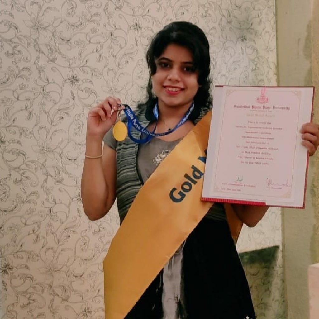 कु. प्रियंका संदेश शहा रामचंद्र गोपाळ शेलार उर्फ शेलार मामा सुवर्णपदक देवून सन्मानित करण्यात आले. सावित्रीबाई फुले पुणे विद्यापीठ बोर्ड ऑफ एक्झामिनेशन अँडइव्हाल्यूशनचेसंचालक महेश काकडे यांच्या हस्ते कु. प्रियंका हिला सन्मानचिन्ह तसेच प्रमाणपत्र देवूनगौरविण्यात आले.