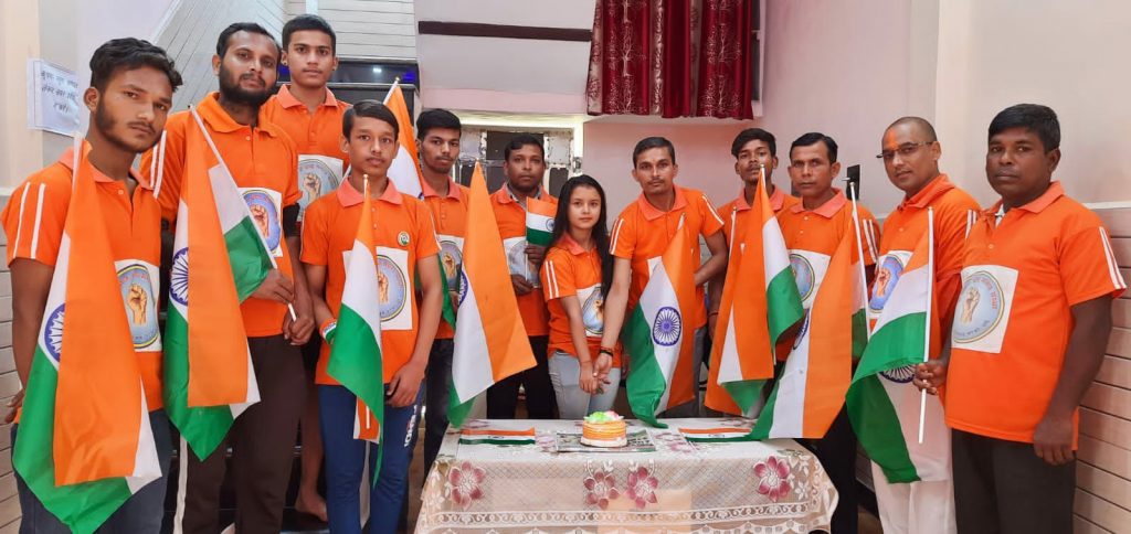 से 75 वें स्वतंत्रता दिवस के शुभ अवसर पर संस्था पदाधिकारियों ने केक काटकर मिष्ठान वितरण कर 75 वाँ स्वतंत्रता दिवस मनाकर समाजहित एवं भारतहित में हमेशा कार्य करने का संकल्प लिया