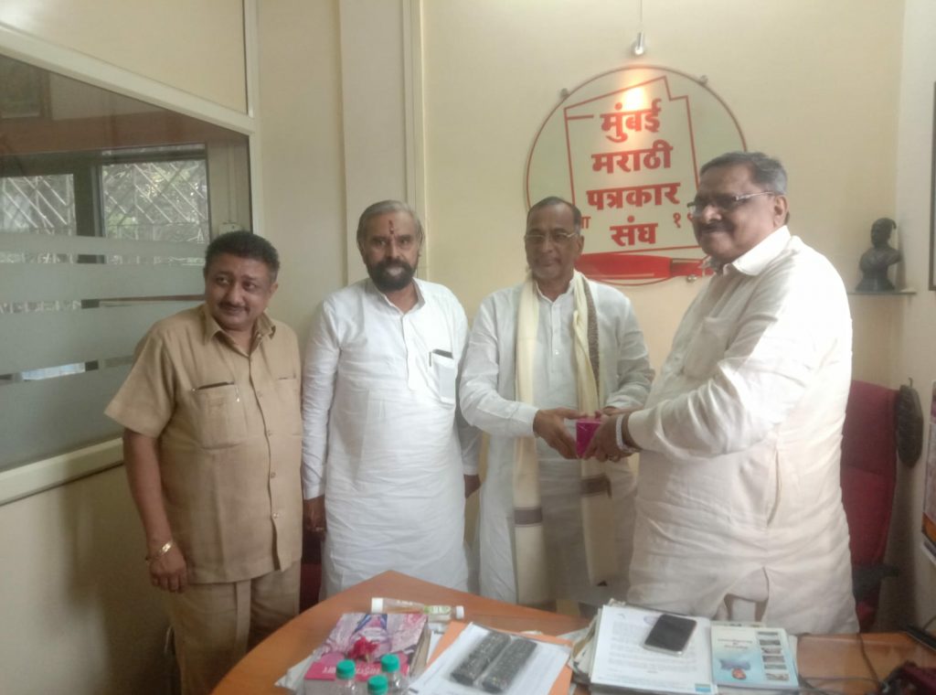 मुंबई – मुंबई मराठी पत्रकार संघाची स्थापना सन 1941 ची. अनेक दिवसांपासून मोबाईलवर चर्चा व्हायची अखिल भारतीय मराठी पत्रकार परिषदेचे अध्यक्ष श्री एम डी शेख ,सरचिटणीस श्री अरुणकुमार एस. मुंदडा व कार्यकारीनी सदस्य तथा पुणे जिल्हा अध्यक्ष संदेश शहा यांनी मुंबई मराठी पत्रकार संघाला नुकतीच सदिच्छा भेट दिली. तेव्हा संघाचे अध्यक्ष श्री नरेंद्र वाबळे यांच्याशी मुंबई बरोबरच राज्यातील पत्रकारांचे विविध अडचणीवर चर्चा केली . लॉक डाऊन च्या कालावधीमध्ये केवळ अधिस्विकृतीधारक पत्रकारांनाच मुभा असते ते सरसकट पत्रकारांना सवलती हव्यात ,सर्व पत्रकारांचा विमा राज्य शासनानेच उतरविला पाहिजे ,कोरोनाने दगावले गेलेल्या पत्रकारांना केंद्र सरकारच्या पीआयबी विभागाकडून पाच लाख रुपयांची मदत जाहीर करण्यात आली ती राज्य शासनाने सुद्धा मदत जाहीर केली पाहिजे ,राज्यातील अनेक पत्रकारांवर हेतुपूर्वक हल्ले केले जातात त्यामुळे पत्रकारांना राज्यशासनाने संरक्षण द्यावे ,हल्ले करणाऱ्यांवर दखलपात्र गुन्हे दाखल करण्यात यावेत ,पत्रकारांना निवृत्तीनंतर पेन्शन योजना चालू झाली पाहिजे ,मुंबई येथे लोकल रेल्वेचा प्रवास करण्यासाठी अधिस्वीकृती धारक पत्रकारां प्रमाणेच सर्व सरसकट पत्रकारांना लोकल रेल्वे प्रवासाची सोय असली पाहिजे अशा अनेक प्रश्नांवर प्रदीर्घ चर्चा झाली . यावर एकसंघ होऊन मात करण्यासाठी एक मत झाले . तेव्हा मुंबई मराठी पत्रकार संघाच्या वतीने अध्यक्ष नरेंद्र वाबळे यांनी अखिल भारतीय मराठी पत्रकार परिषदेचे अध्यक्ष श्री एम डी शेख यांचा शाल, श्रीफळ व मानचिन्ह देऊन सत्कार केला . यावेळी अखिल भारतीय मराठी पत्रकार परिषदेचे सरचिटणीस अरुणकुमार एस. मुंदडा ,अखिल भारतीय मराठी पत्रकार परिषदेचे कार्यकारी सदस्य तथा पुणे जिल्हाध्यक्ष डॉ संदेश शहा ,पत्रकार संजय धोत्रे व पत्रकार संघातील इतर मान्यवर उपस्थित होते .
